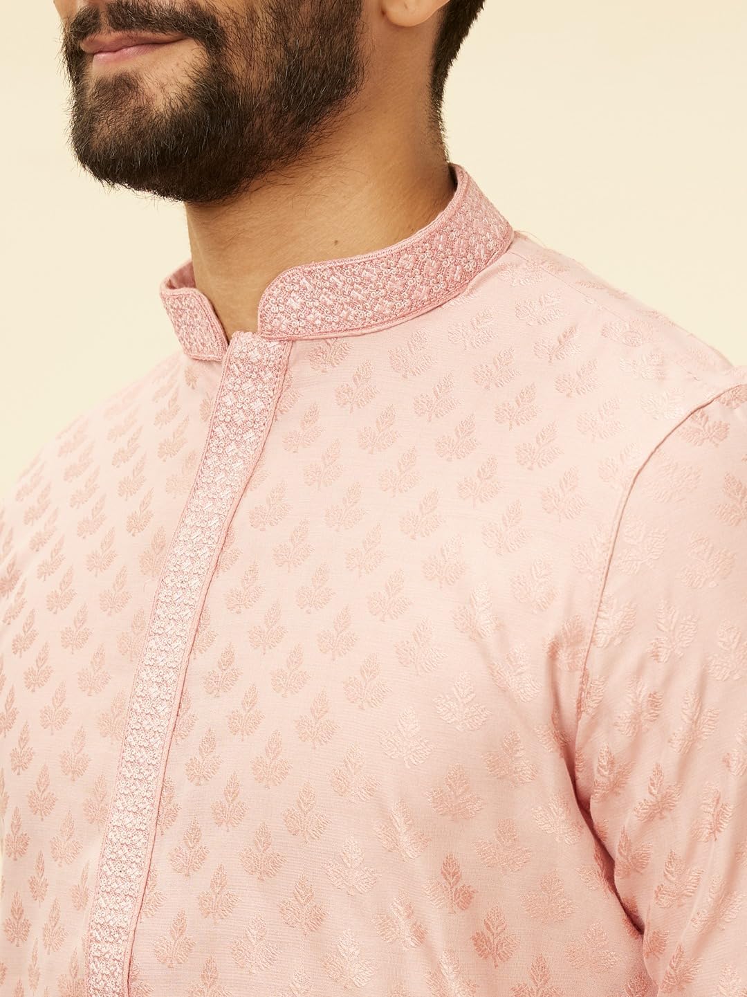 Package Contains: 1 Kurta 1 Pyjama Design: Crafted in Jacquard weave, this raspberry pink leaf patterned kurta set showcases a vibrant maple leaf pattern, lending a touch of nature-inspired elegance. The kurta’s embroidered bandhgala neckline and concealed placket add a contemporary flair.