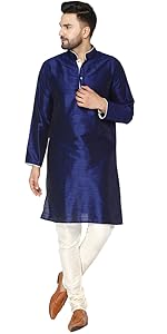 This Ethnic Kurta Pajama from SKAVIJ comes with a mandarin collar and long sleeves which makes it perfect for different occasions. The delicate embroidery done on this kurta set enhances your overall traditional look and makes you the center of attraction on every occasion. The comfortable dupion art silk material used in making this kurta enables you to wear it during any season – be it spring, summer, autumn or winter.