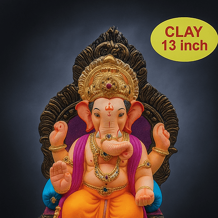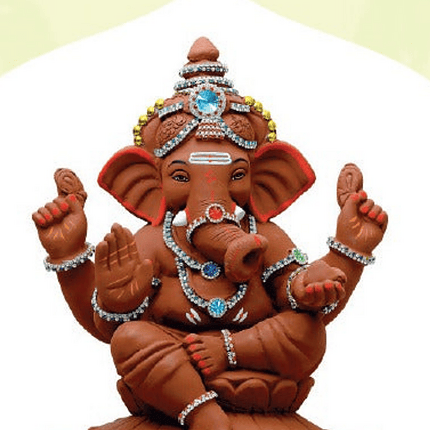 Ganesh Idol 13″ Home Visarjan Kacchi Mitti (Eco Friendly – 134 (Diamond) – Assorted Colour – Only Berlin same day delivery